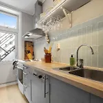 Et fullt utstyrt kjøkken er utstyrt med tekoker og kaffetrakter, samt kjøleskap, stekeovn og kjøkkenutstyr for selvhusholdningsformål. Lotheveien busstopp ligger bare noen få skritt fra leiligheten.